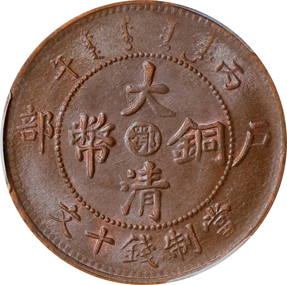- (t) CHINA. Hupeh. 10 Cash, CD (1906). Kuang-hsu (Guangxu). PCGS MS-63 Brown.