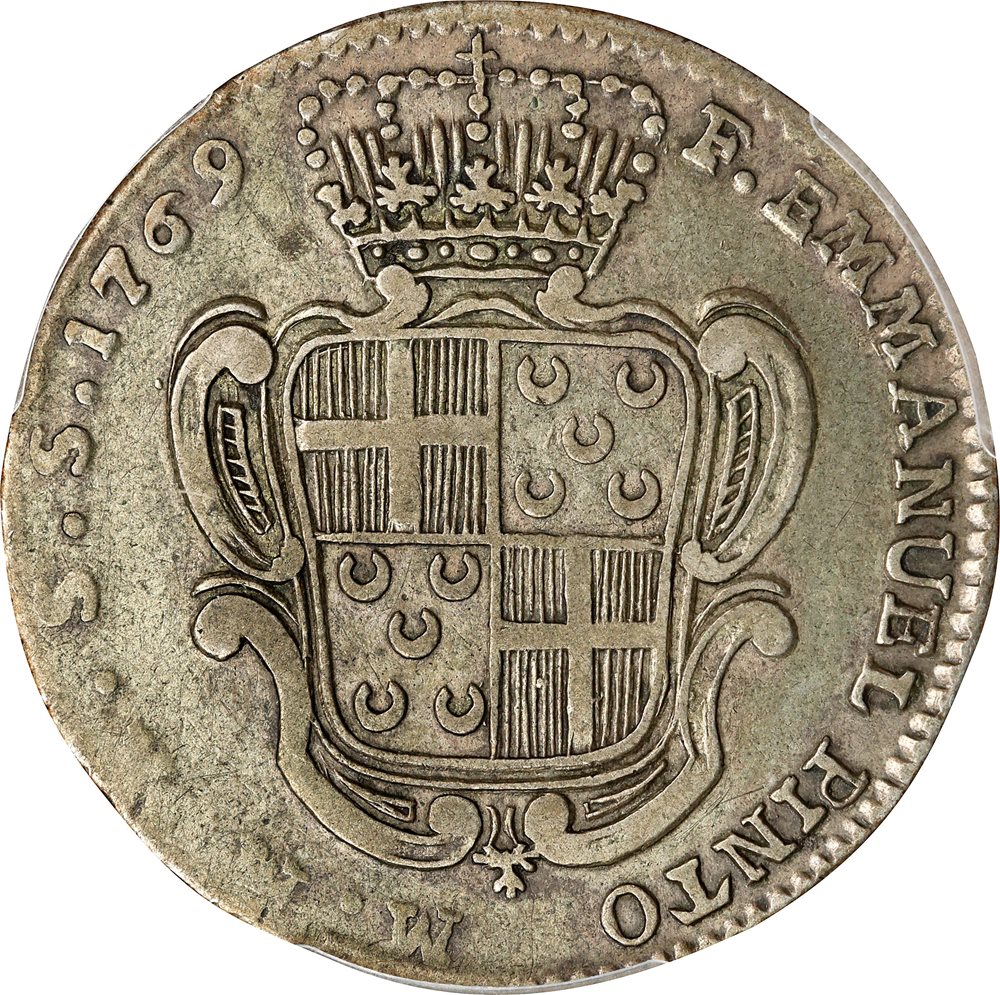 - MALTA. Order of Malta. 15 Tari, 1769. Valletta Mint. Emmanuel Pinto. PCGS VF-35.