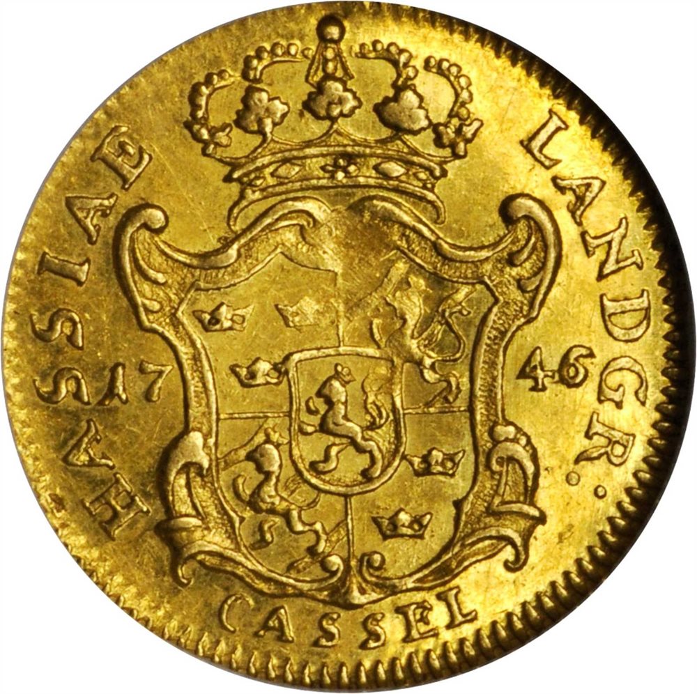 - GERMANY. Hesse-Cassel. Ducat, 1746. Friedrich I, Langrave of Hesse-Cassel as King of Sweden (1730-51). NGC AU-55.