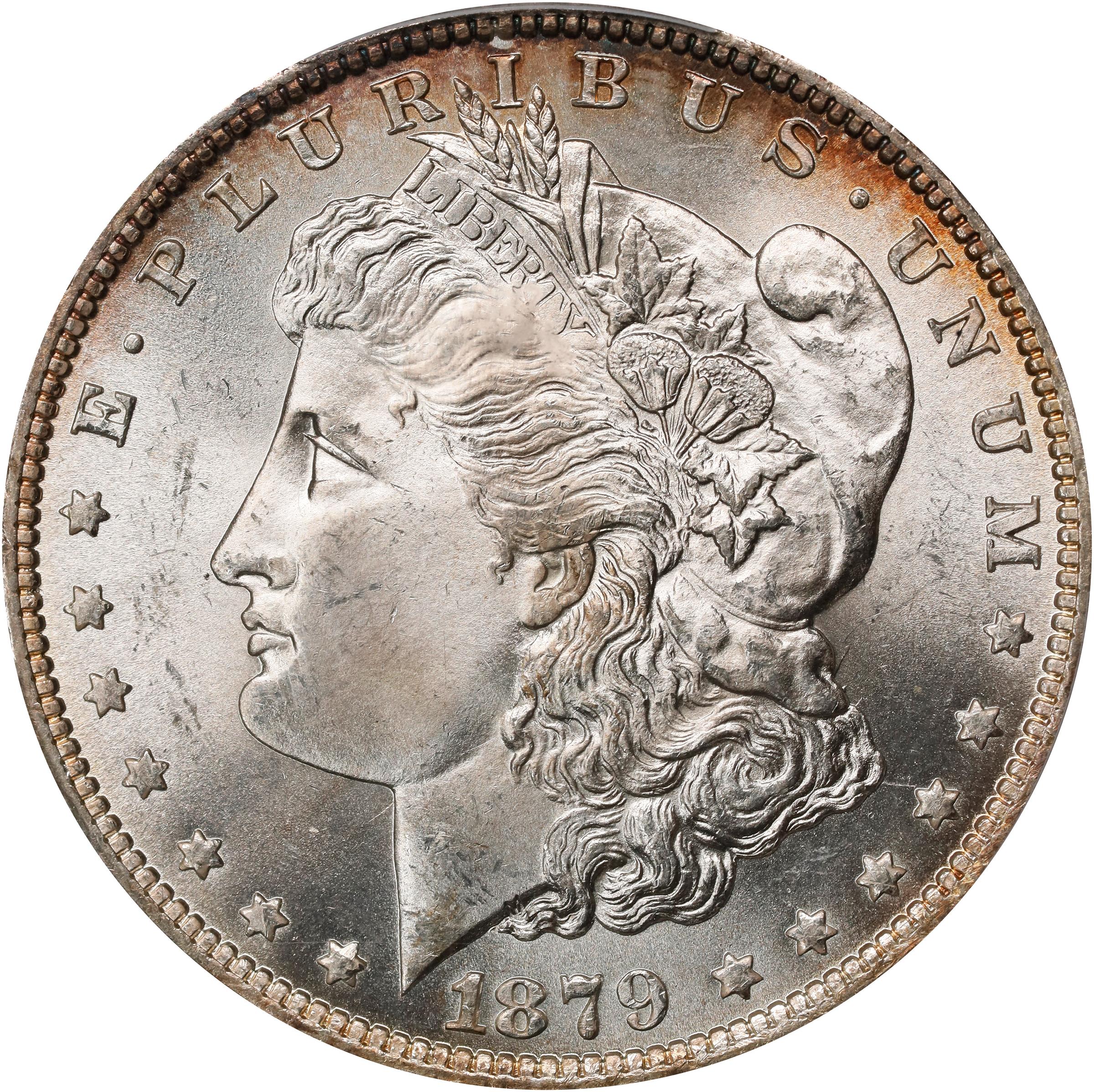 - The gorgeous, frosty surfaces are highly lustrous with an expectably smooth appearance for the coveted premium Gem grade from PCGS. Fully struck, a minimal amount of natural patina clings to selected border areas, slightly more on the obverse. The first of the Morgan dollar issues from the New Orleans Mint, the 1879-O is readily obtainable in lower grades through MS-64, but scarce to rare any finer. This is one of the most visually appealing examples we have offered in recent sales, and it comes highly recommended for inclusion in an advanced Morgan dollar set.