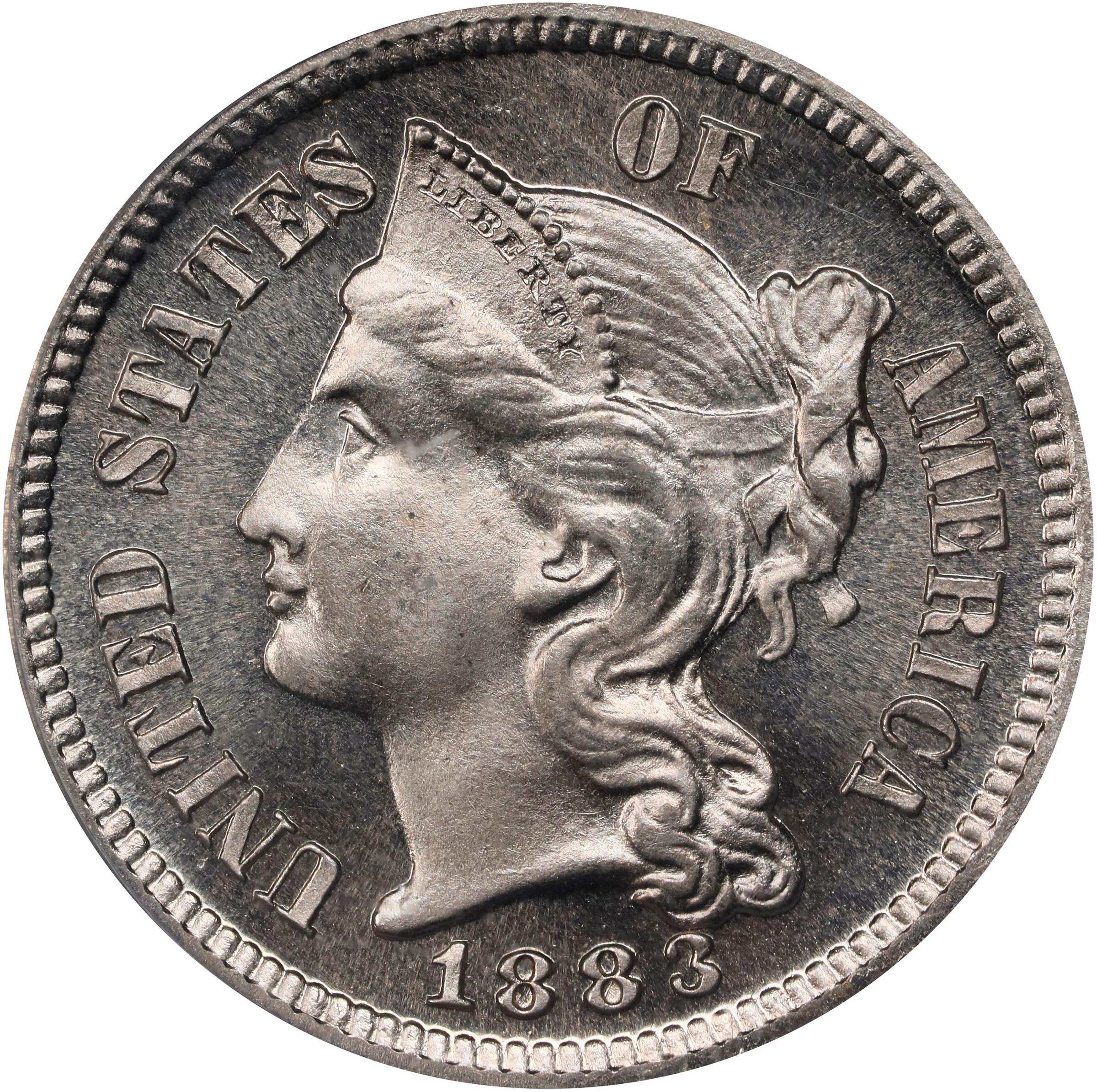 - This beautiful example is virtually brilliant with appreciable cameo contrast between the fields and design elements. As a conditionally scarce Superb Gem from a mintage of 6,609 Proofs, this 1883 nickel three-cent piece will appeal to the quality-conscious specimen type or date collector.