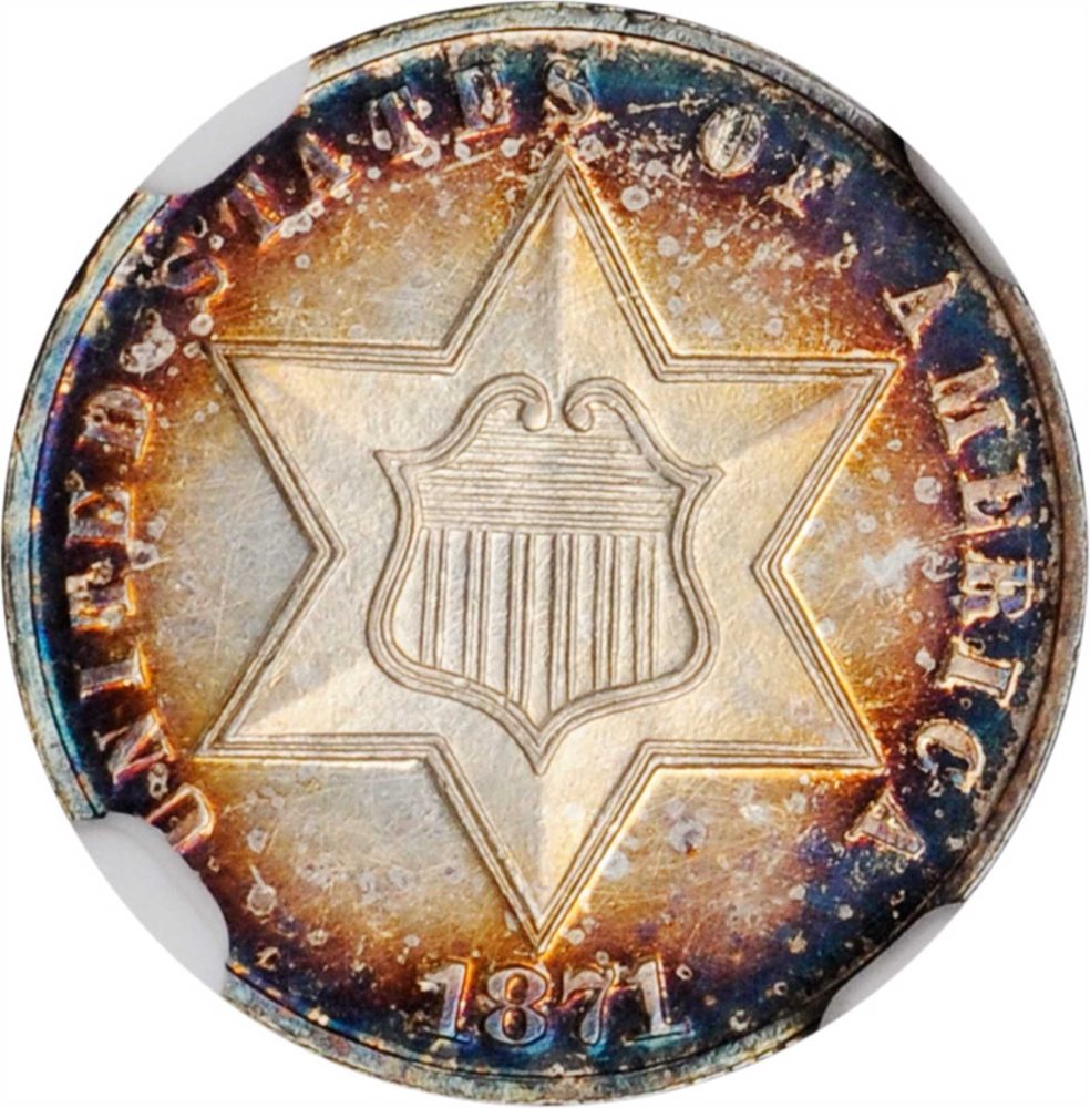 - 1871 Silver Three-Cent Piece. MS-64 (NGC).