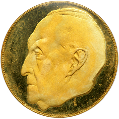 - KM-Bruce X#M28. 34.5 grams. 0.9800 fine. Weight 1.087 ounce. Security and Peace. Head of Konrad Adenaver. <I>Reverse</I>: Germania seated left with shield and sprigs. NGC graded Proof 60 Ultra Cameo.</B> <BR>Estimated Value $900 - 1,000.