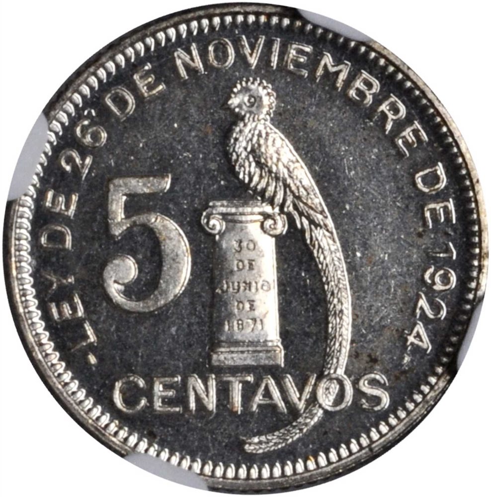 - GUATEMALA. 5 Centavos, 1938. NGC PROOF-66.