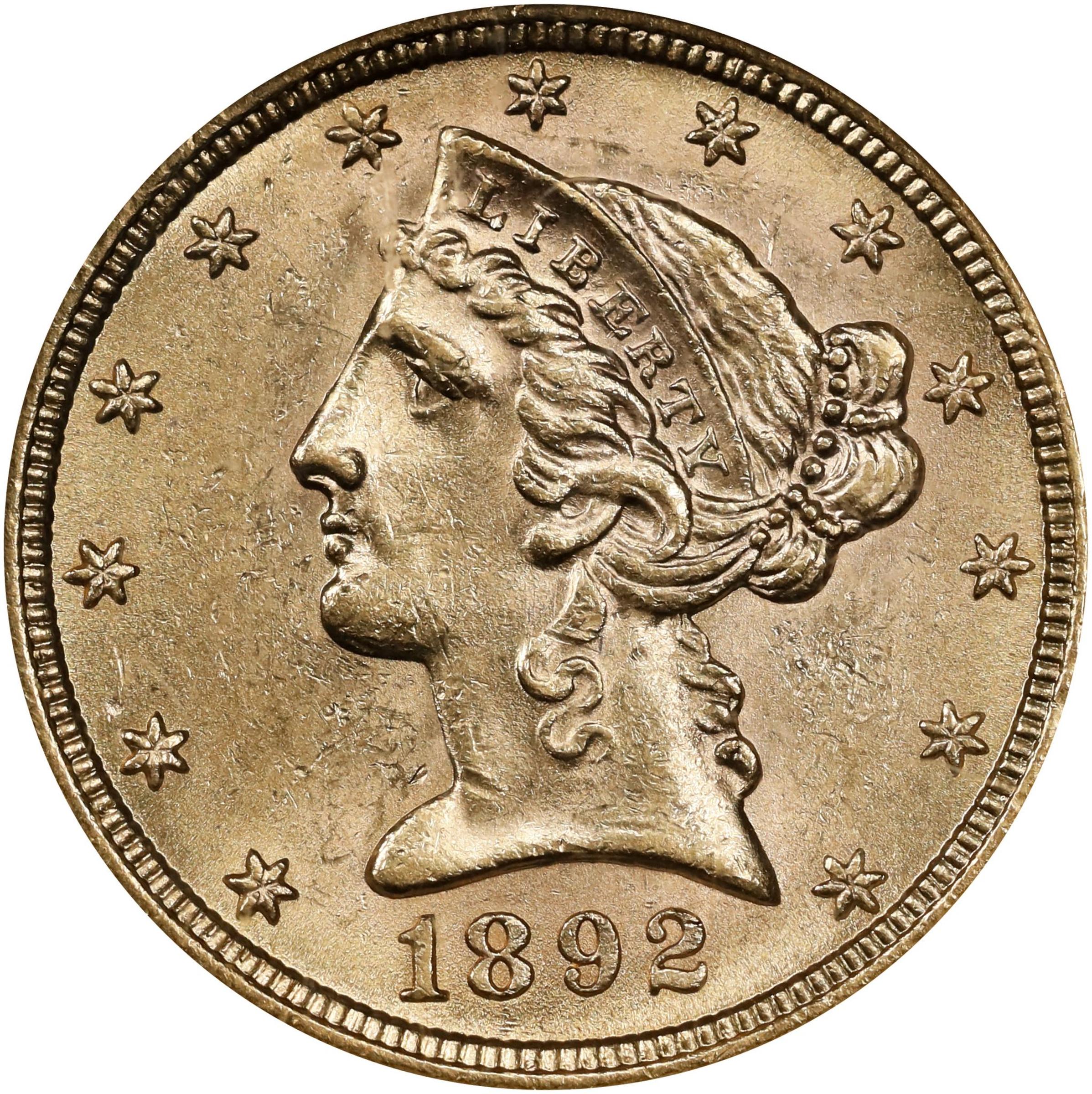 1892-S $5 MS (PCGS#8382)