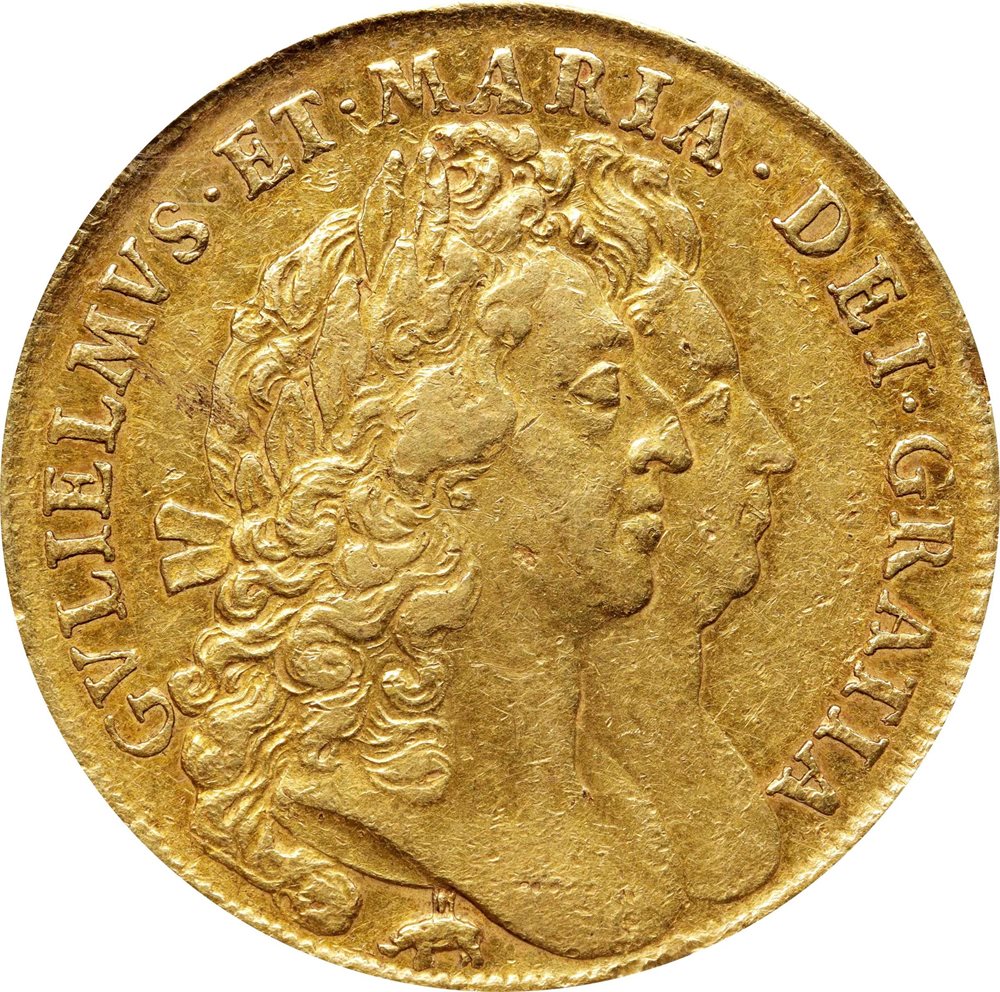 GREAT BRITAIN. 5 Guineas, 1691 Year TERTIO. London Mint. William III & Mary II. PCGS EF-40.