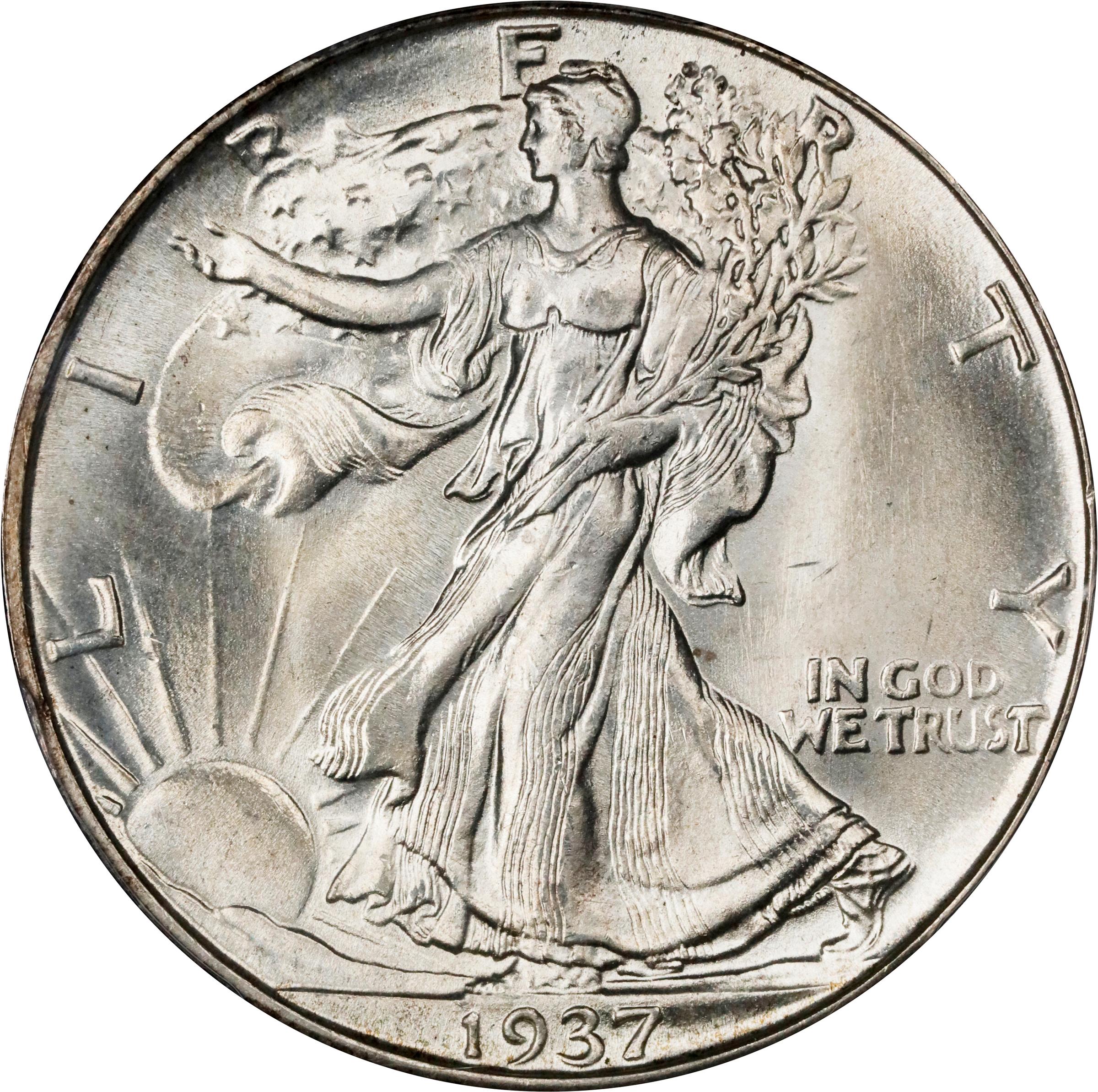 - An untoned frosty-white example of this underrated issue in the middle date Walking Liberty half dollar series. Boldly to sharply struck throughout with intense mint luster. This condition rarity Superb Gem represents a significant bidding opportunity for the astute Walking Liberty half dollar enthusiast.