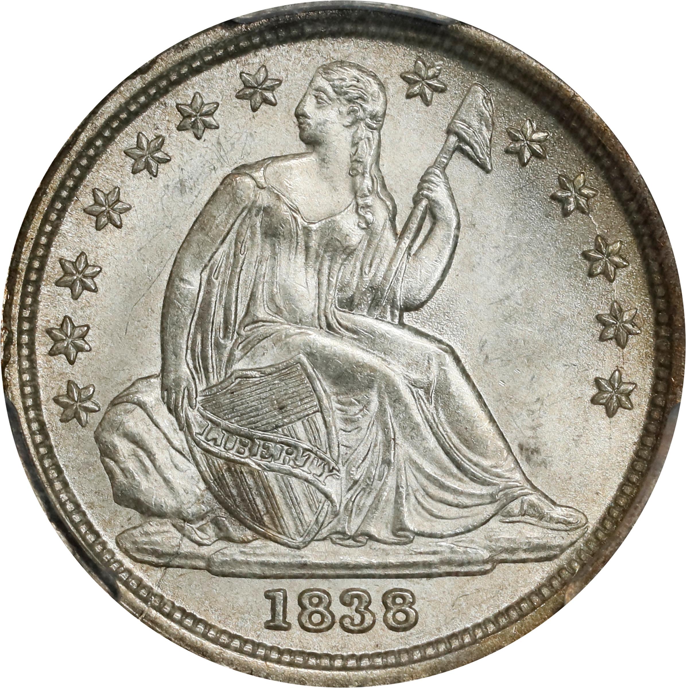 1838 10C No Drapery, Large Stars MS (PCGS#4568)