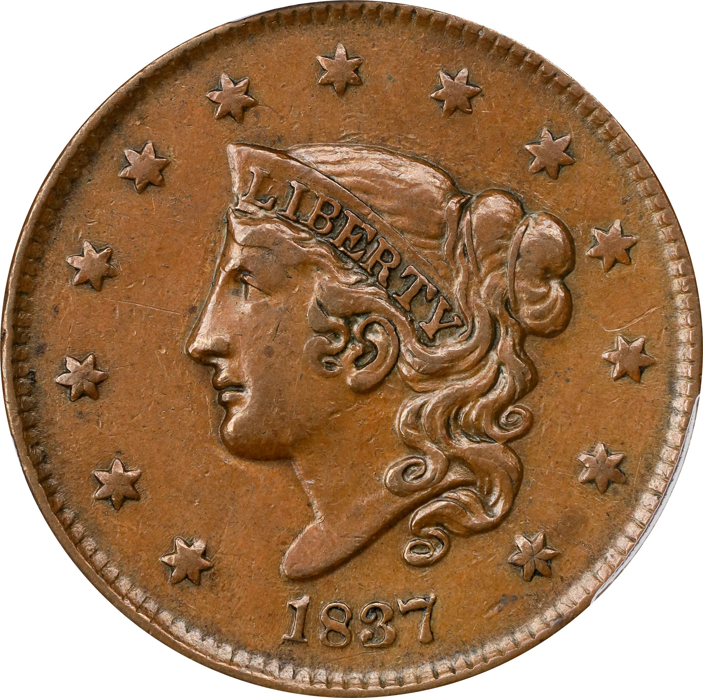 Auction Detail | 1837 1C Plain Cords, Medium Letters, BN MS(PCGS#1735)