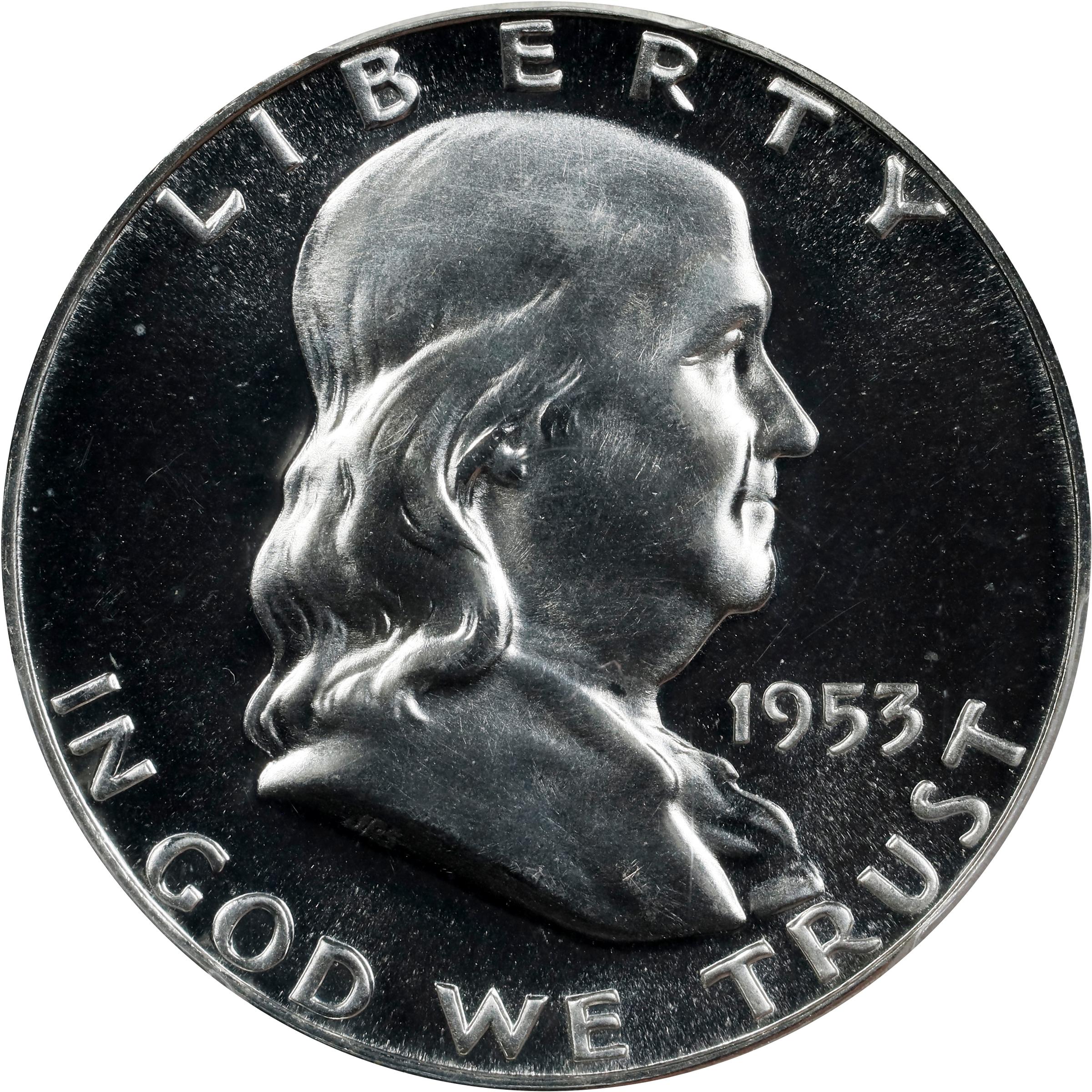 - An amazing specimen that combines virtually pristine surfaces with profound cameo contrast. Untoned with a radiant silver-white appearance; to view this coin is to admire it. This is the final year in which the Mint distributed Proof sets with the coins housed in individual cellophane sleeves. With time these sleeves often cracked or otherwise opened, exposing the coins to potential marks and other blemishes. As such, most Proof 1953 half dollars extant are in lower grades through Proof-64. In Superb Gem Proof, as here, this is a very rare issue, especially with a Cameo finish. A true condition rarity from this underrated 20th century silver series.