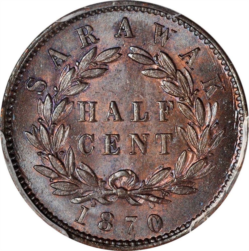 - SARAWAK. 1/2 Cent, 1870. PCGS MS-64 Brown Gold Shield.