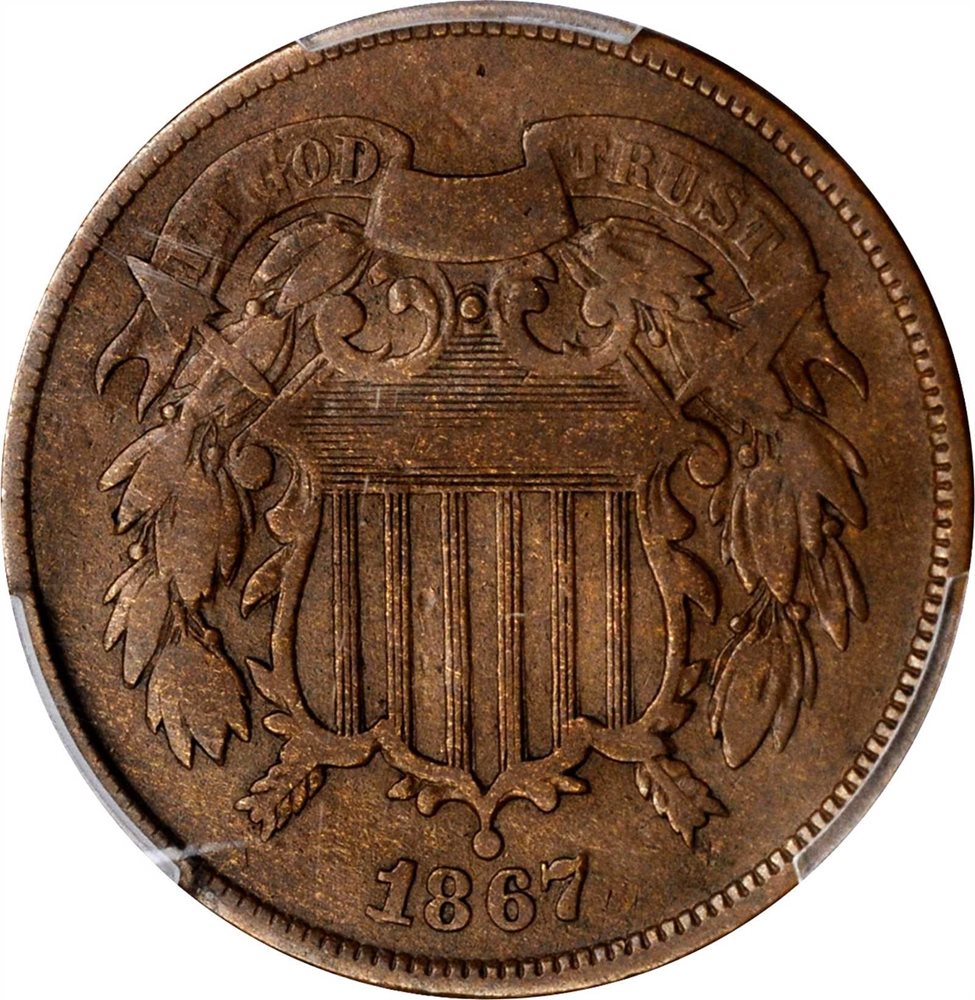- 1867 Two-Cent Piece. FS-101. Doubled Die Obverse. Fine-12 (PCGS).