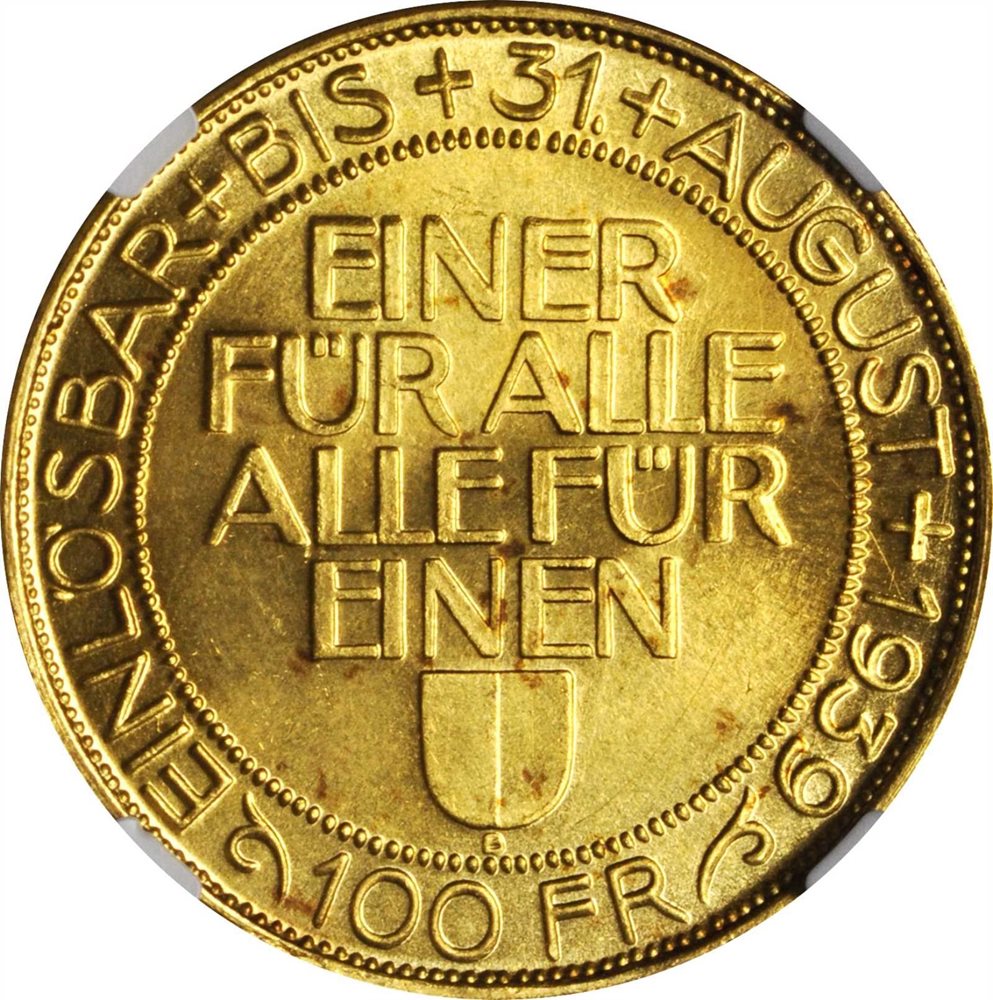 - SWITZERLAND. Lucerne. 100 Francs, 1939-B. NGC MS-64.