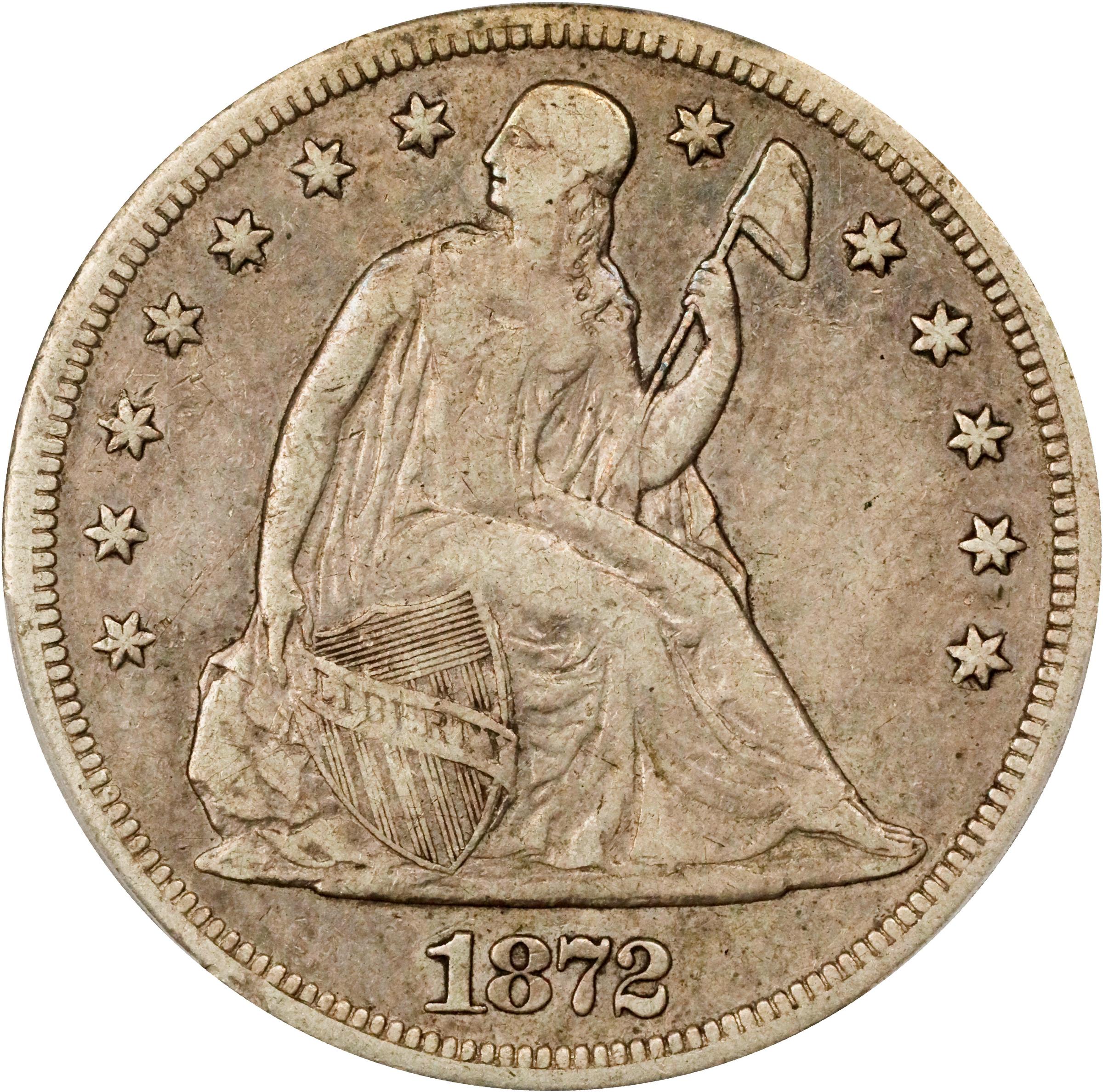 - One of only 9,000 silver dollars struck in San Francisco in 1872. The Bowers reference notes: "<em>The 1872-S is rarer than the mintage indicates, a situation that can be laid at the doorstep of melting and exportation...examples of the 1872-S are elusive in all grades and are very rare in Mint State.</em>" The surfaces present a soft steel-gray appearance with some darker incrustation in selected crevices on the reverse. Notice the high placement of the tiny "S" mintmark on the reverse.