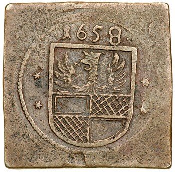 German States - Hildesheim.Token Klippe, 1658.Bronze. 29 x 29 mm. Circle stamp with city arms and date above. Reverse:Circle stamp with date and O's. Very Fine.