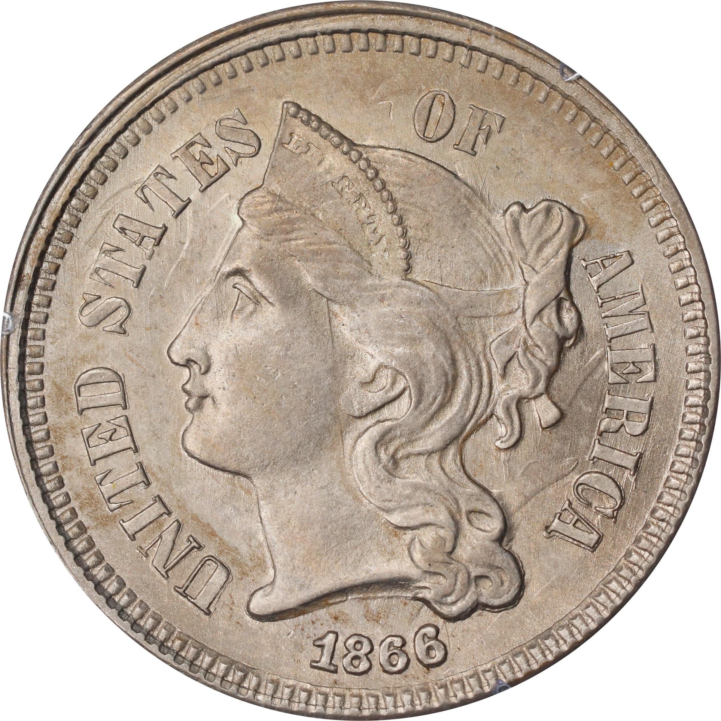 1866 3CN MS (PCGS#3732)