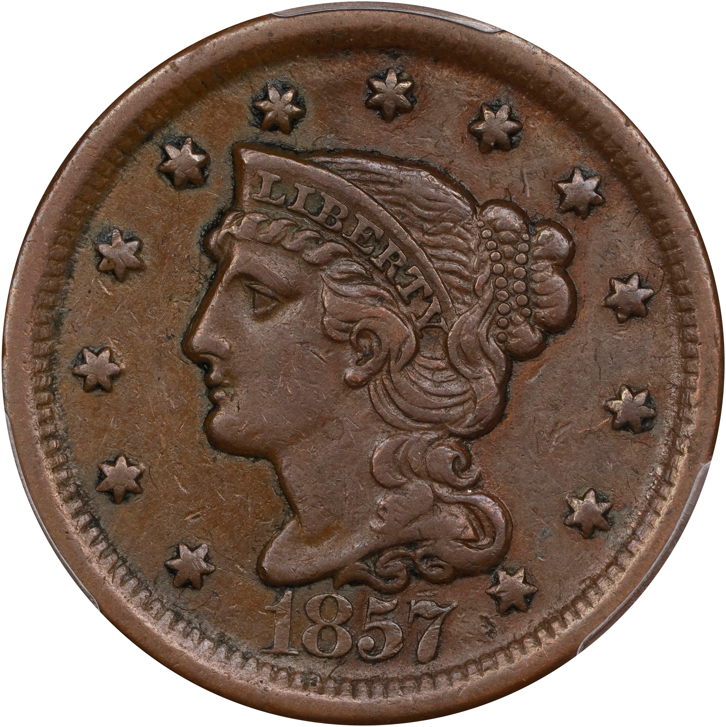 Auction Detail | 1857 1C Large Date, BN MS(PCGS#1928)