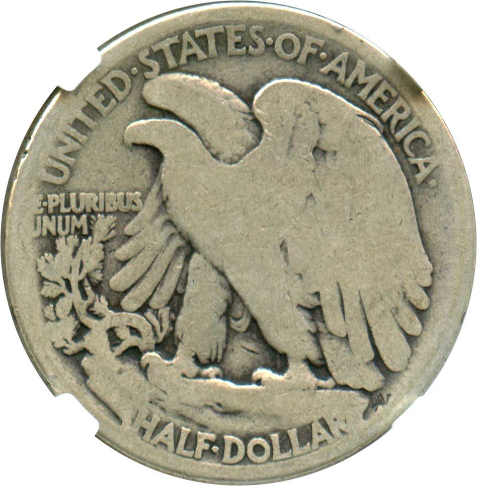 First year issue in the Walking Liberty Half Dollar Series.