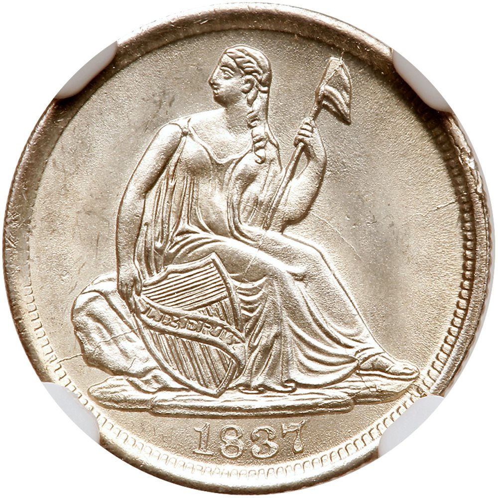 1837 H10C Capped Bust, Large 5C MS (PCGS#4289)