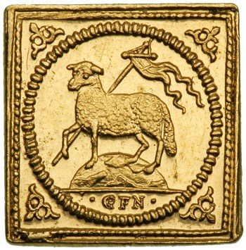 German States - Nuremberg.¼ Ducat Klippe, ND (1700).Fr-1889. Crowned arms. Reverse:Lamb on globe. Brilliant Uncirculated.