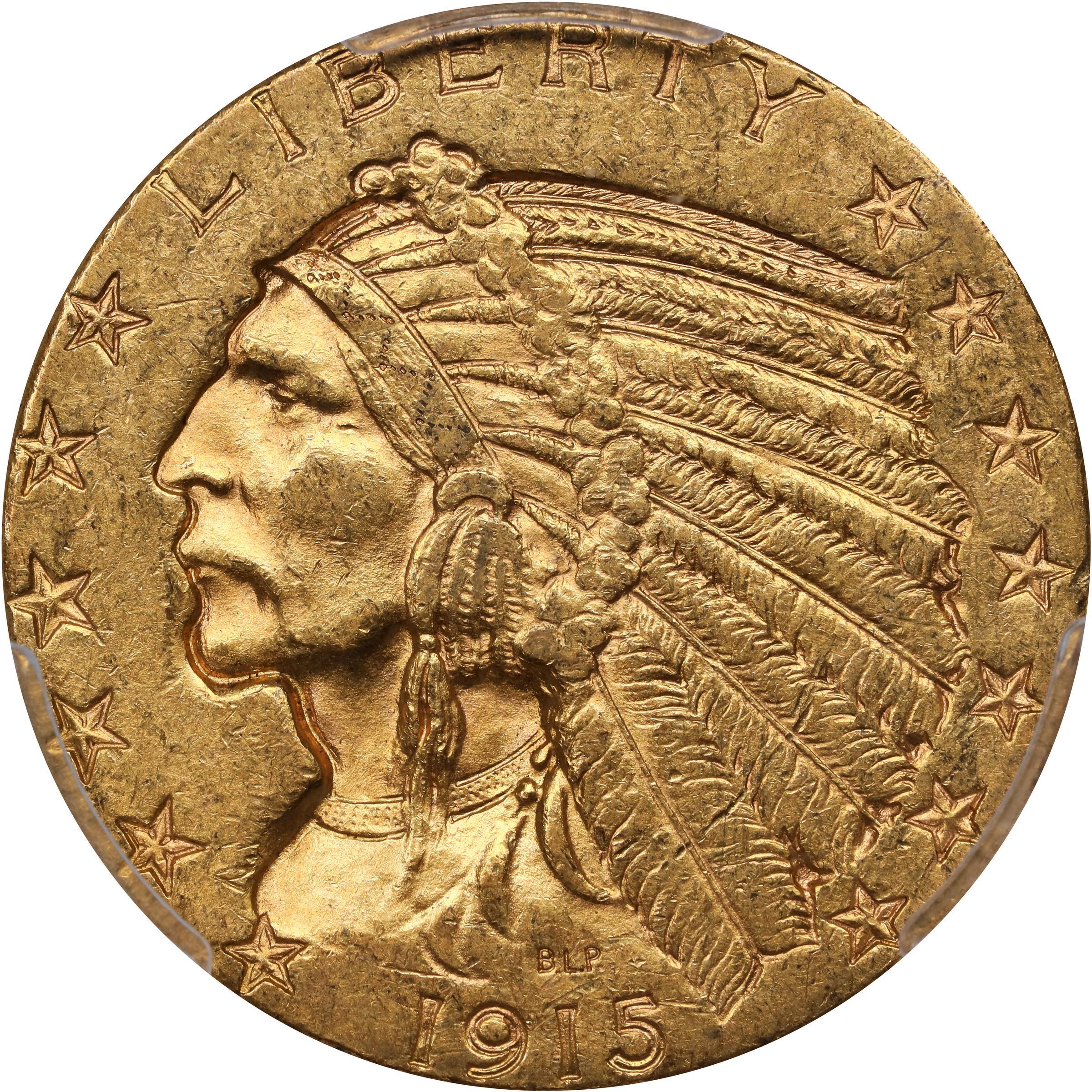 - Lustrous honey-orange surfaces are boldly to sharply defined over the focal features. The peripheries shows signs of die fatigue, typical of the issue, but the S mintmark is fully outlined and readily appreciable. One of the leading condition rarities in the Indian half eagle series of 1908 to 1929, the 1915-S (just 164,000 pieces produced) is scarce to rare in all Mint State grades. With Choice and Gem-quality examples particularly elusive, this premium MS-62 with CAC approval represents the finest realistically obtainable for most advanced gold enthusiasts.