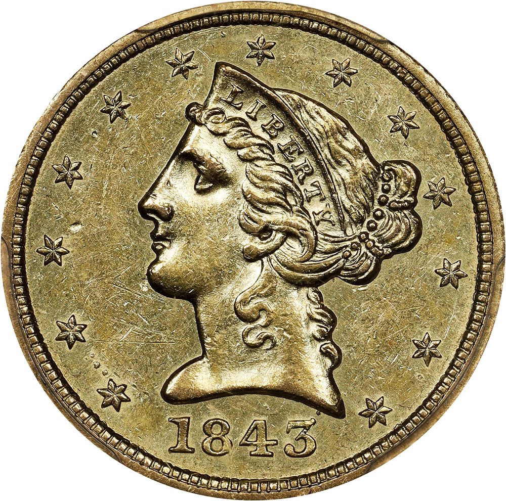 1843-D $5 Medium D MS (PCGS#8215)
