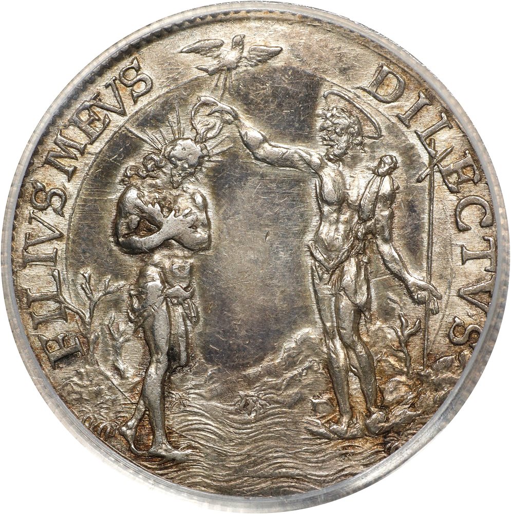 Dav-4212 = KM. A delightful and enchanting crown, this specimen is largely without time in circulation, with the noted repair being its only distraction. The reverse scene features St. John baptizing Christ in the River Jordan.