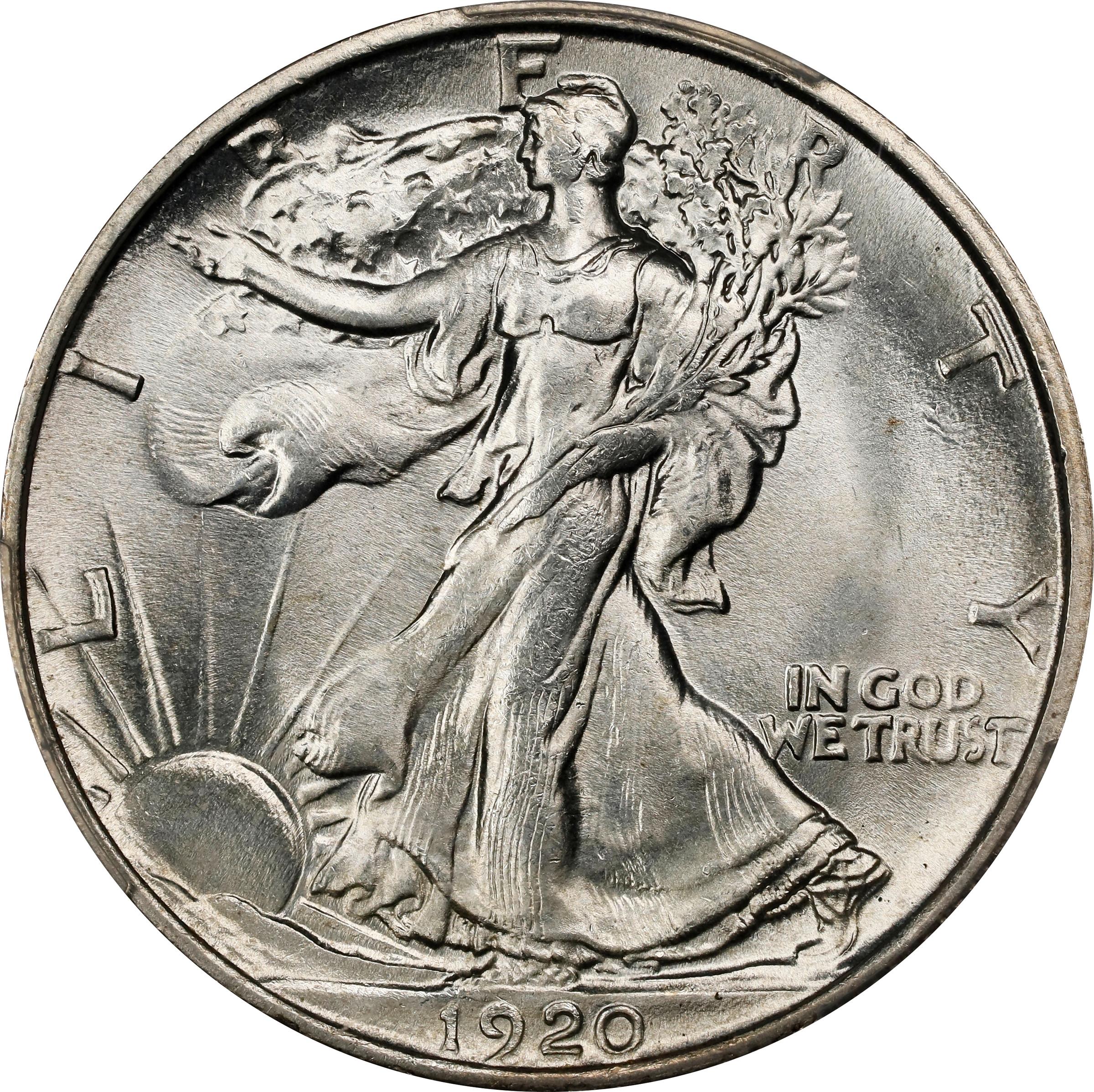 - This beautiful 1920-S half dollar is fully untoned with intense satin luster. It is smooth and appealing with a sharply executed strike by the standards of this challenging S-Mint issue. Expertly preserved and virtually pristine in-hand.<p>After producing only 1,552,000 half dollars in 1919, the San Francisco Mint increased its output for this denomination to 4,624,000 coins in 1920. The 1920-S is among the more challenging Walking Liberty half dollars to locate in Mint State, especially with the combination of Gem surface preservation and superior striking quality offered here. In terms of total number of Uncirculated coins extant, in fact, the 1920-S ranks 10th in rarity among the 65 circulation strike issues of this type. This is one of the finest certified examples that we have handled in recent memory, and would be an excellent choice for an advanced collection.