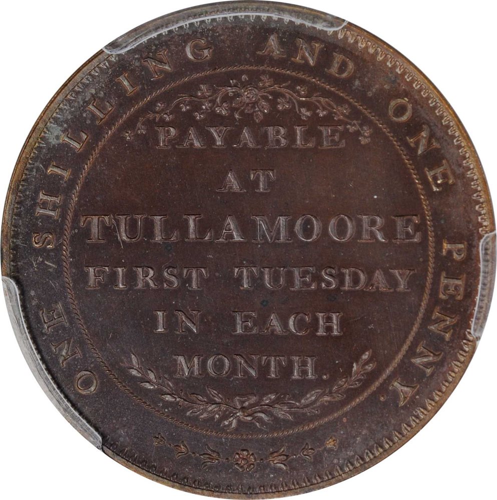 - IRELAND. King's County. Charleville. Bronzed Copper 13 Pence Token, 1802. PCGS PROOF-65 Gold Shield.