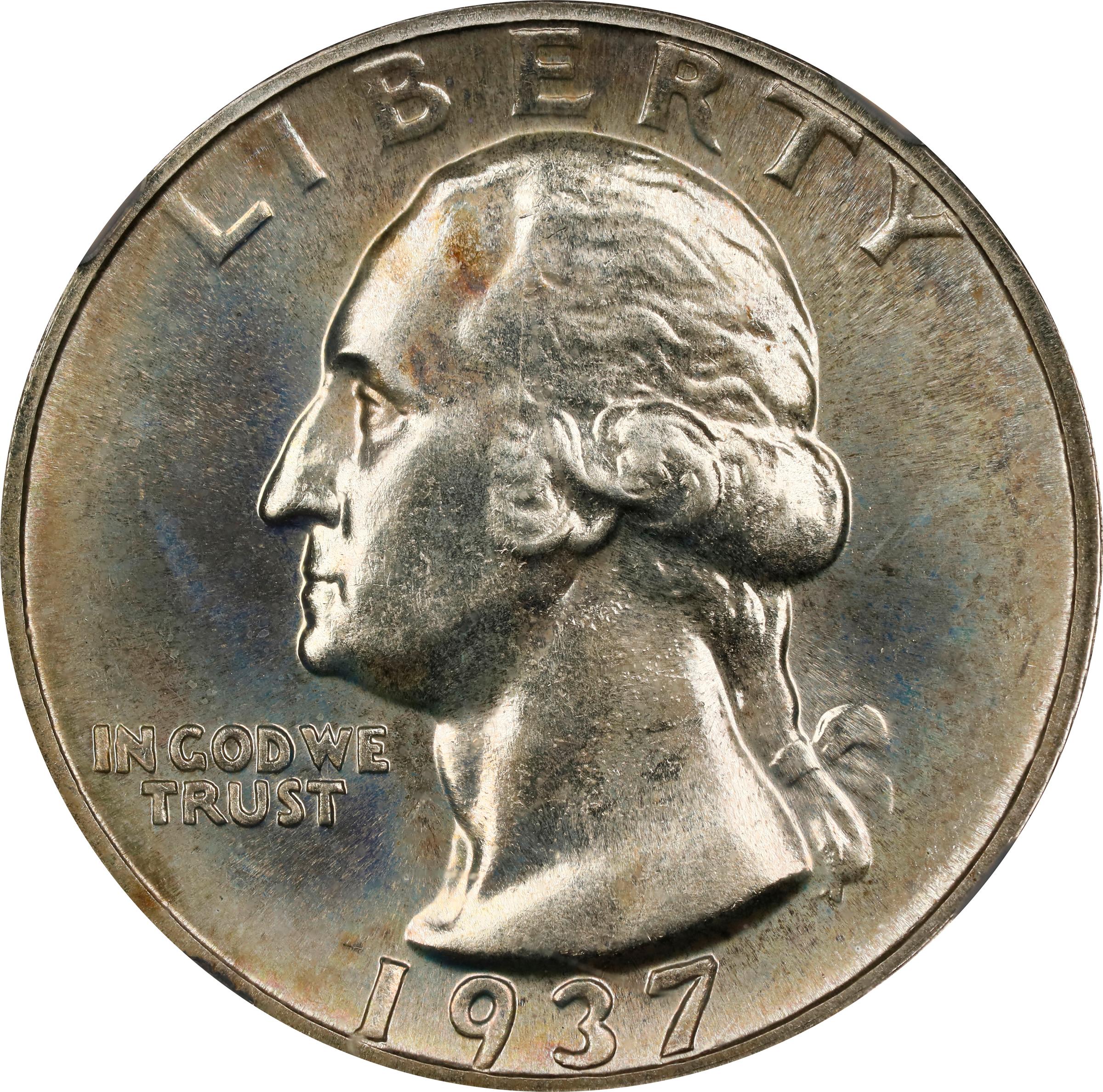- This lightly and attractively toned specimen exhibits sandy-gold tinting that appears to drift toward the borders. Fully struck and essentially pristine, it is difficult for us to imagine a more expertly preserved survivor of this 5,542-piece issue, the scarcest in the Proof Washington quarter series after only the first year 1936.