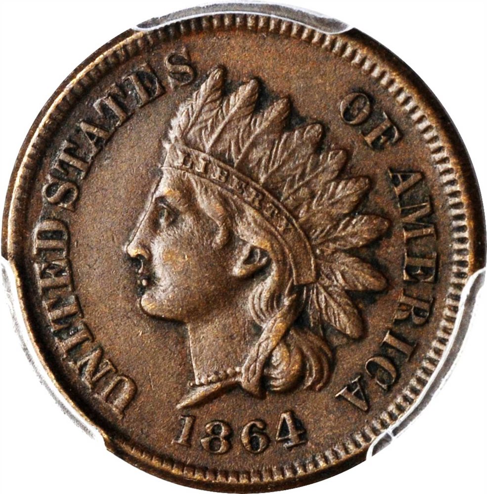 - 1864 Indian Cent. Bronze. L on Ribbon. AU-55 (PCGS).