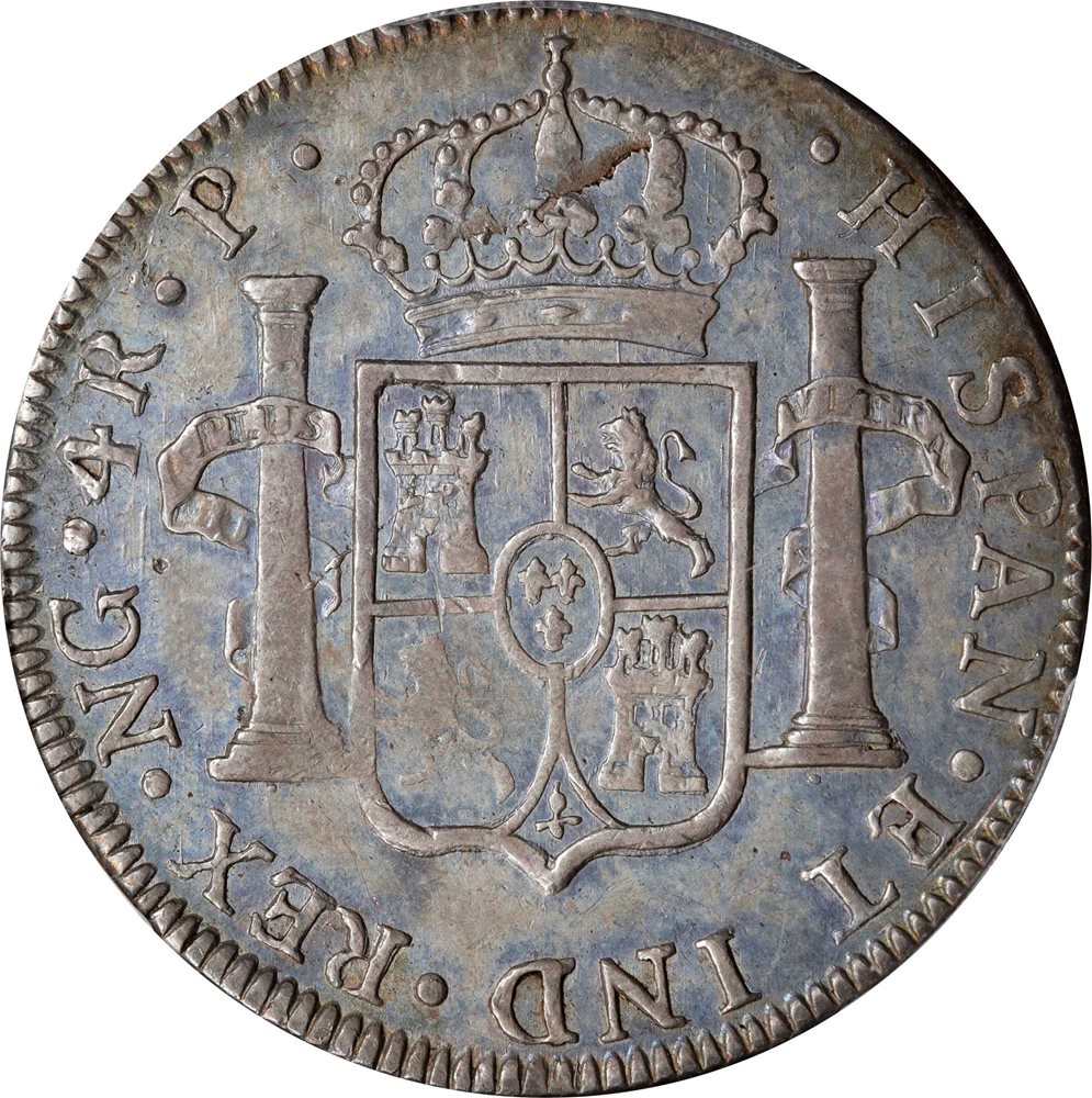 - GUATEMALA. 4 Reales, 1778-NG. Nueva Guatemala Mint; Assayer Pedro Sanchez de Guzman (P). Charles III. PCGS Genuine--Cleaned, AU Details.