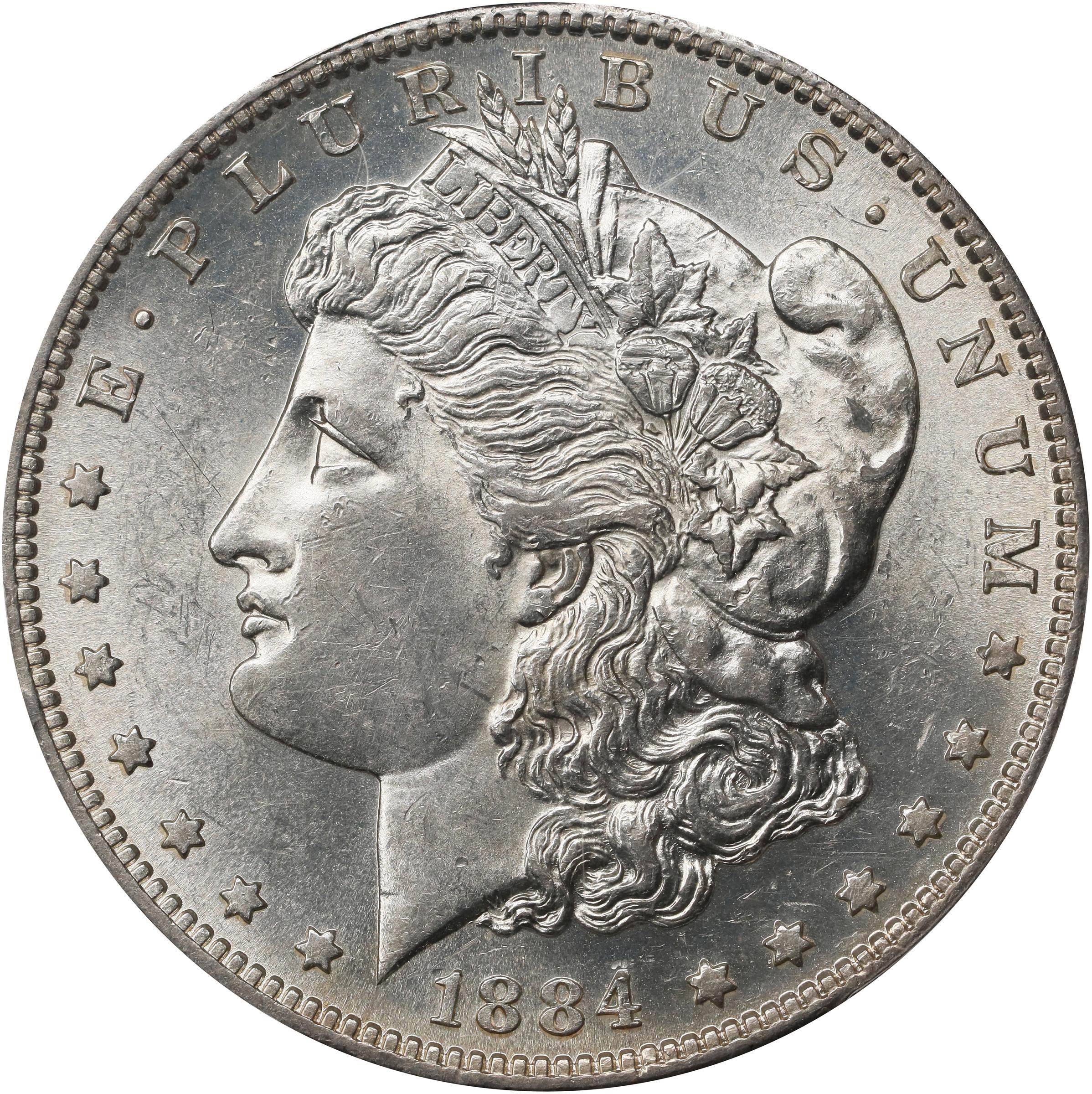 - Just a whisper away from full Mint State, this is a highly desirable example of the conditionally challenging 1884-S Morgan dollar. Brilliant surfaces are near-fully lustrous with a lively satin texture. Boldly to sharply defined throughout with strong eye appeal, the famed rarity of this issue in Uncirculated condition is sure to result in strong bids for this premium quality Choice AU.