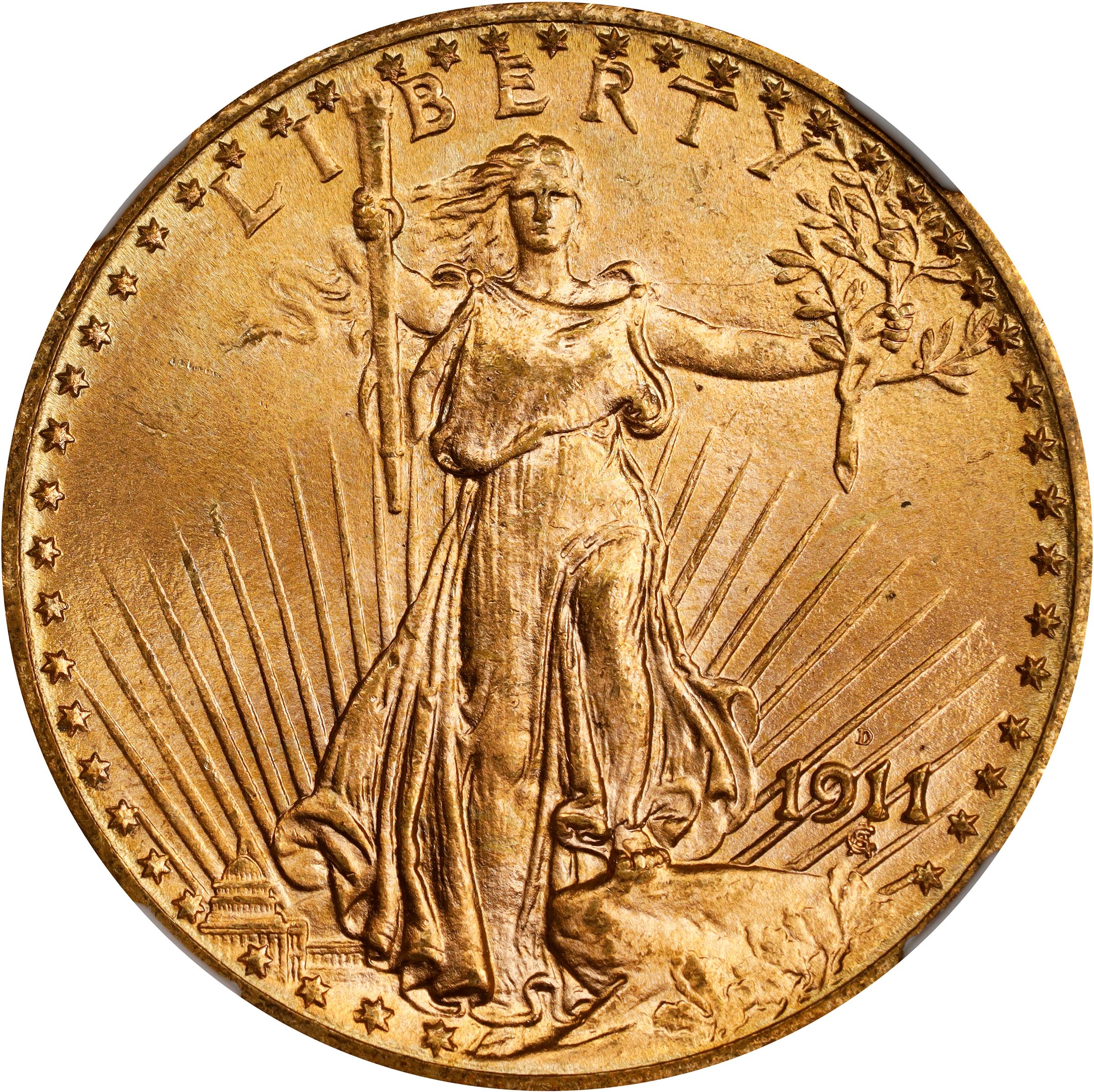 - Ranking 42nd of 53 circulation strike Saint-Gaudens double eagles in terms of total number of Mint State coins extant, the 1911-D is one of the more readily obtainable issues of the type in today's market. Most survivors grade no finer than MS-65, however, and even in MS-66 this issue is scarce by the standards of the type. The MS-66+ grade level is the one at which the 1911-D develops into a true condition rarity, and the offered coin represents a fleeting bidding opportunity for the high quality gold type or date collector.