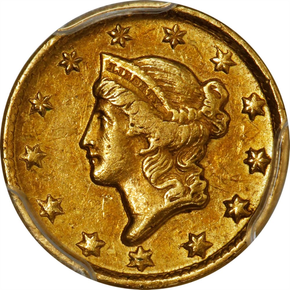 - 1850-D Gold Dollar. Winter 2-C, the only known dies. AU-55 (PCGS). CAC.