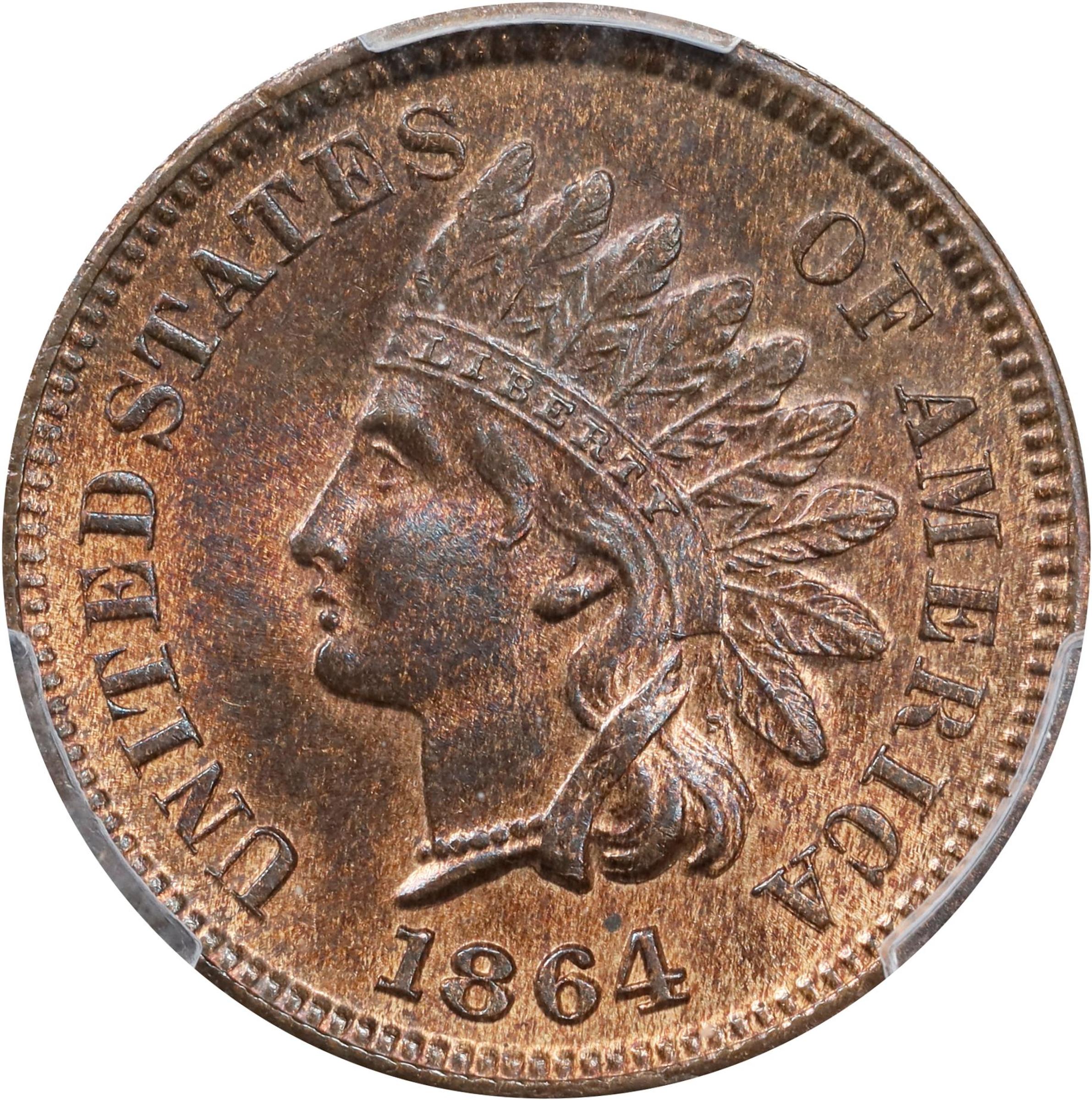 - A handsome example with gently mottled gray-brown patina on surfaces that retain plenty of warm orange-rose mint color. This is a popular transitional hub variety in the early Indian cent series, and it is represented here by a premium quality Gem Mint State coin that will see spirited bidding among discerning numismatists.