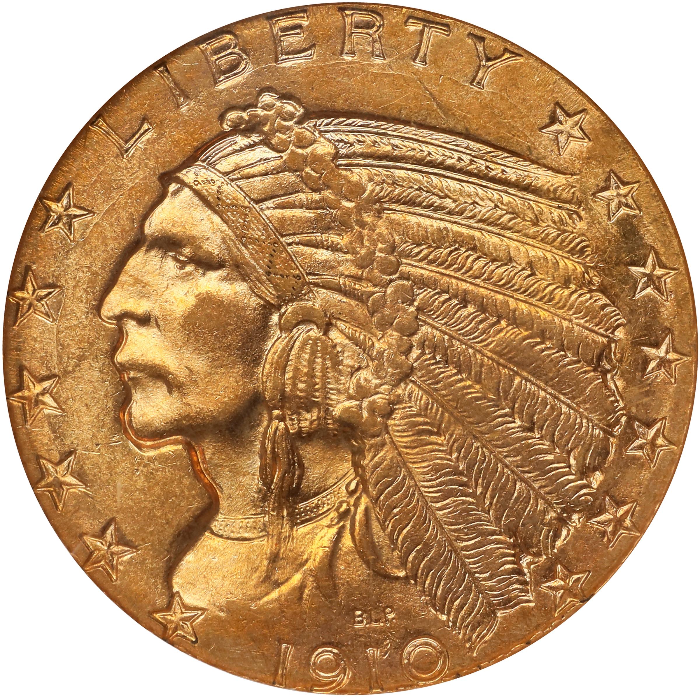 - Frosty mint luster blends with vivid deep orange-apricot color on both sides of this impressive near-Gem. An ideal high grade example to represent the conditionally challenged Indian half eagle series of 1908 to 1929.