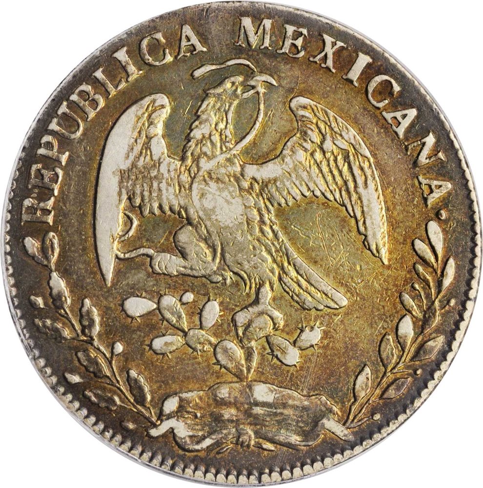 - MEXICO. 8 Reales, 1873/1-Ga IC. Guadalajara Mint. PCGS Genuine--Chopmark, EF Details Gold Shield.