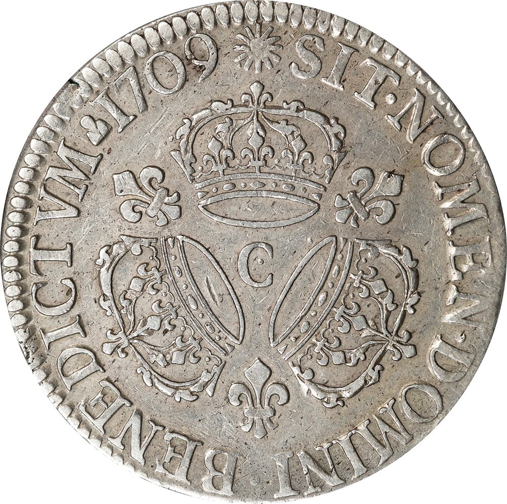 - FRANCE. Ecu, 1709-C. Caen Mint. Louis XIV. PCGS VF-35.