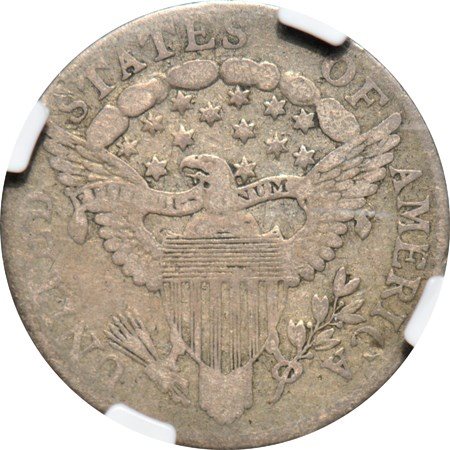 - JR-2, 4 berries. From the all-important standpoint of original quality, this should prove to be a fantastic choice for type, as the entire surface displays unequivocally vintage grey color and zero evidence of cleaning or other transgression. Perfectly even, natural circulation resulted in a coin with notably smooth surfaces, and a single contact point cleverly hidden just above the folds of Liberty's bust offers the only (trivial) complaint. Typically struck, the reverse displays the fading of the lettering along the lower left as always seen.