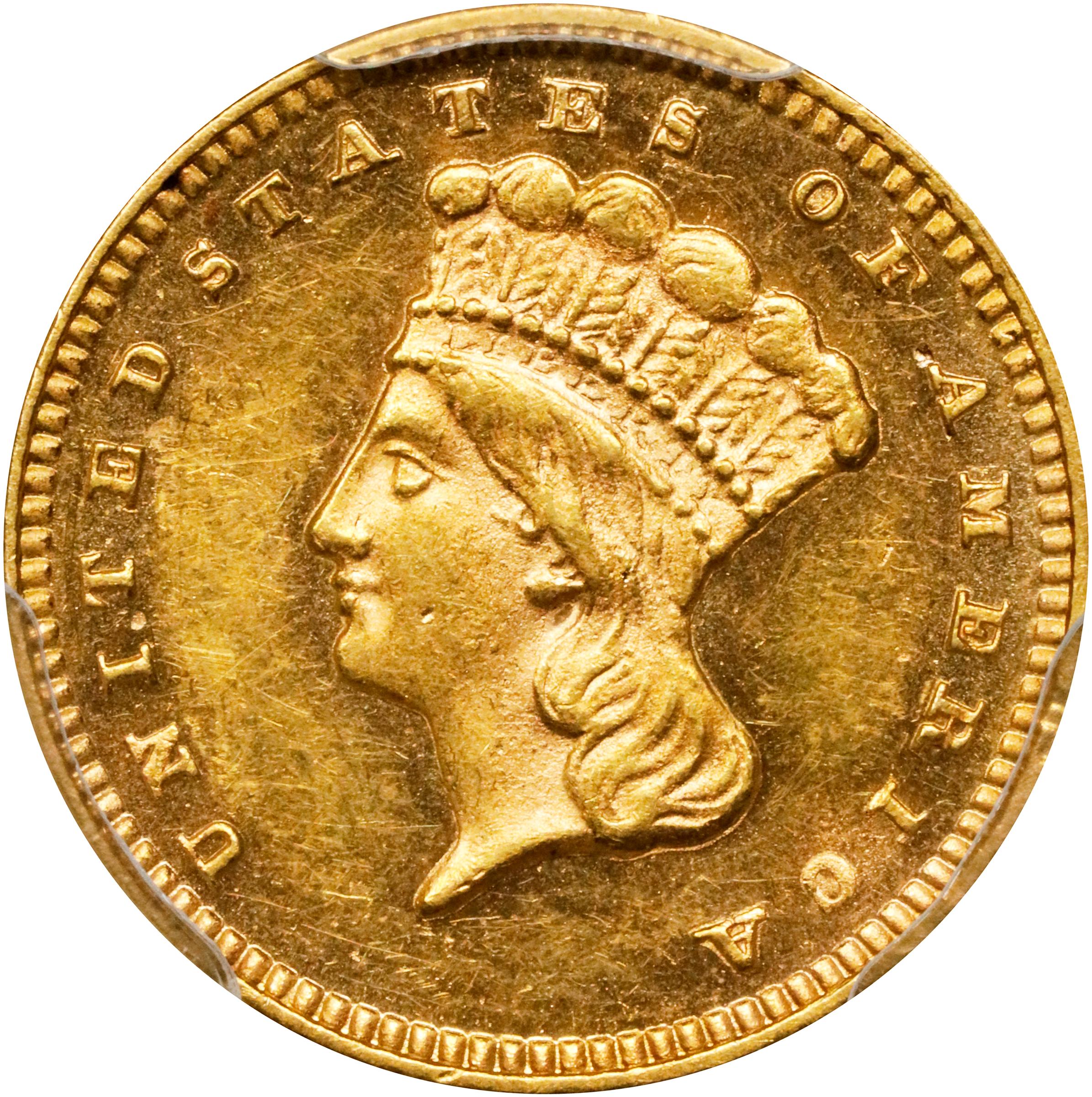 - This example readily lives up to the coveted PL designation from PCGS. Nicely mirrored and highly reflective despite numerous tiny wipe marks and hairlines in the fields that limit the grade There is even considerable cameo contrast to the finish that enhances already memorable eye appeal. The surfaces are evenly toned in vivid orange-gold.<p><p>1876 saw the great Centennial Exhibition in Fairmount Park in Philadelphia, as many Americans celebrated the nation's independence, while still recovering from the turmoil of the Panic of 1873. Silver began to rise in prominence as "Silverites" campaigned for unlimited legal tender status for the metal at a 16 to 1 silver to gold ratio. Demand for gold dollars was desultory at best and only 3,200 gold dollars were struck at the Philadelphia Mint, making it one of the rarer of such issues. The coins seem not to have attracted much numismatic notice at the time, though a fair number of Mint State examples do exist.