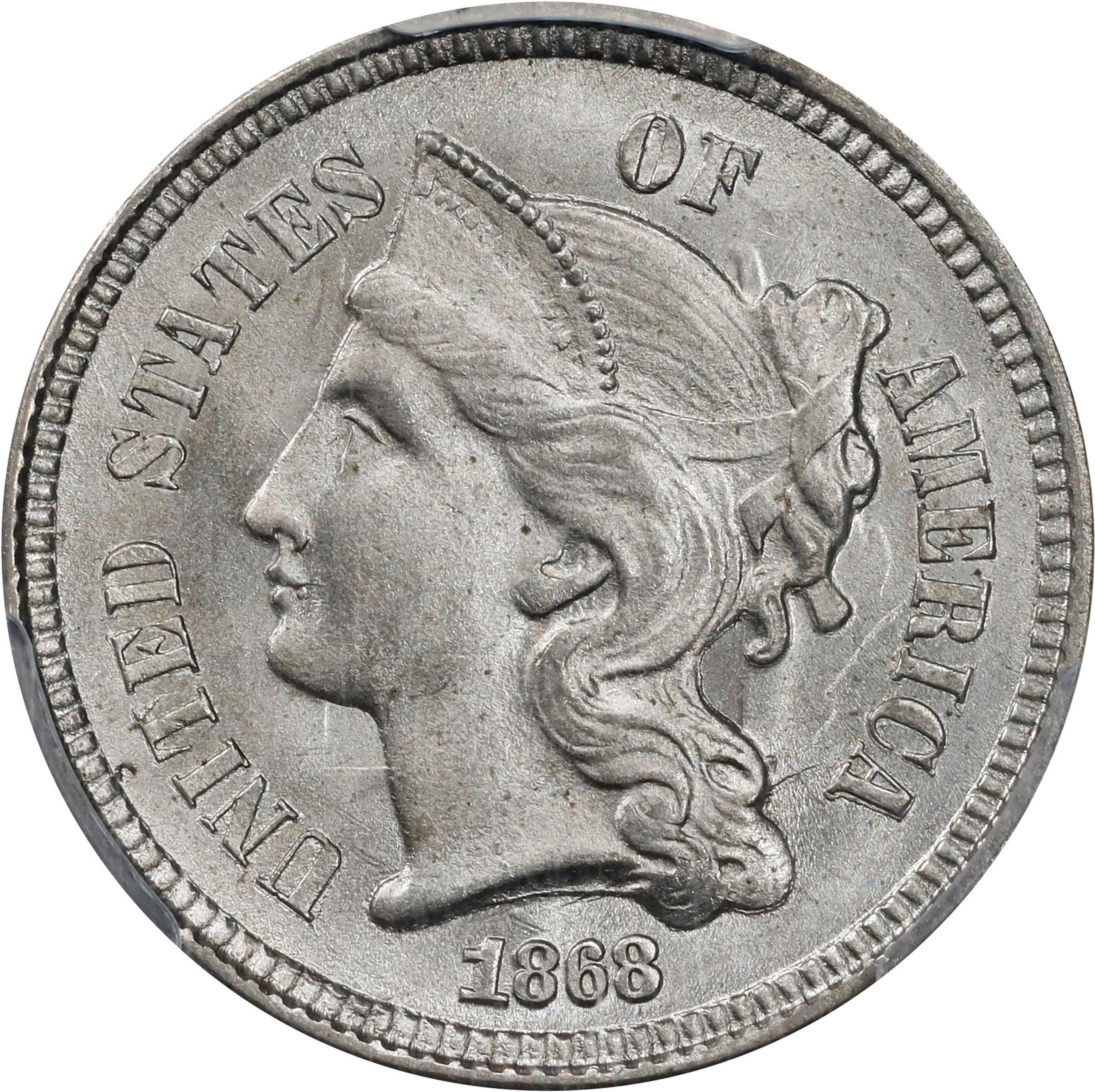 1868 3CN MS (PCGS#3734)