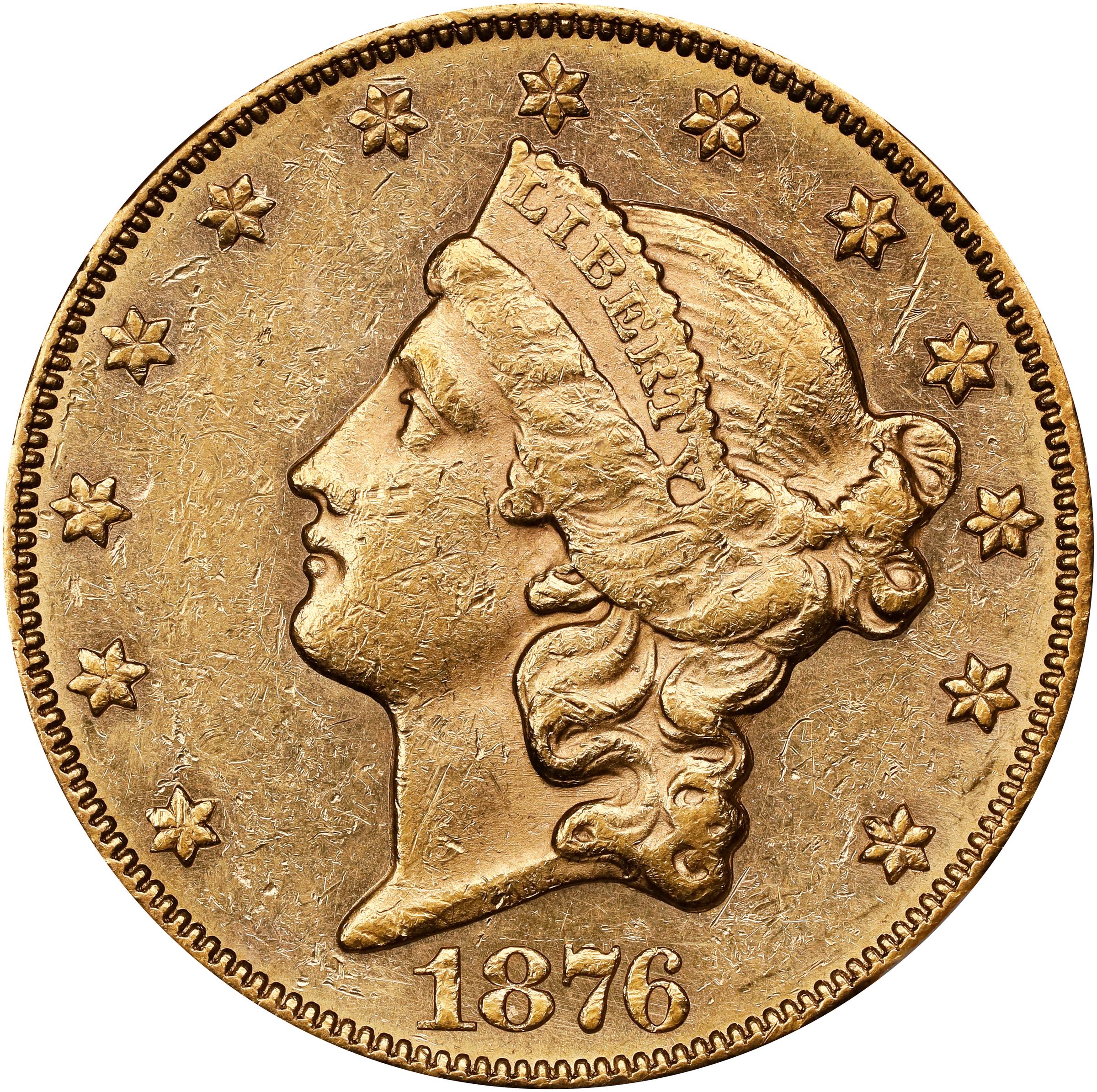 - Bright pinkish-honey surfaces display sharp definition throughout. With ample mint finish, this double eagle is sure to appeal to CC-Mint type and date collectors. Any 1876-CC double eagle combines the appeal of the Old West, America's centennial year, and the undeniable charm of a large and beautiful gold coin. This is a desirable example of a perennially popular issue.
