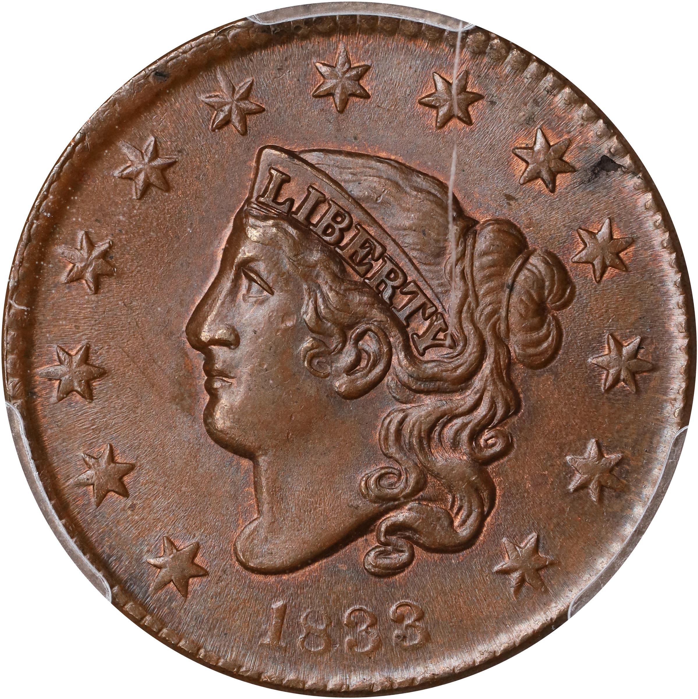 1833 1C, BN MS (PCGS#1696)