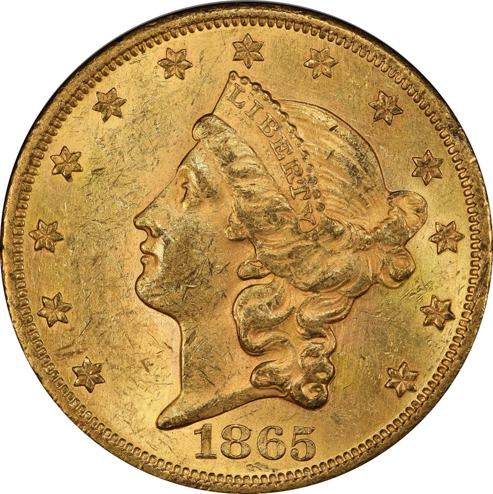 - Premium Uncirculated 1865 Twenty-Dollar Gold
